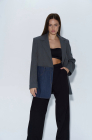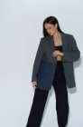 Жакет-оверсайз, с темно-синим джинсовым карманом, светло-серый