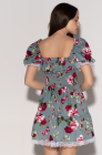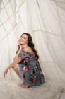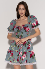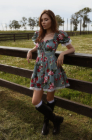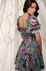 Платье с завязками на груди, пионы на зеленом