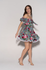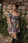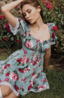 Это кокетливое платье в сочном оттенке зеленого - твой стильный портал в мир весеннего очарования и легкости.  Его ключевой акцент - принт с пионами - завораживает своей красотой и не оставляет своей обладательнице ни единого шанса быть незамеченной. Завязки на груди добавляют наряду игривости и романтики, а трендовый крой позволяет варьировать его внешний вид: носи платье с изящными плечиками для создания нежного аутфита или спусти их для более расслабленного настроения. Добавь этот яркий акцент в свой гардероб - ты заслуживаешь быть в центре внимания!