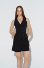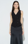 Этот минималистичный двубортный жилет - идеальное решение для девушек, любящих играть на грани дерзости и элегантности. Строгий черный цвет и чёткие линии создают ощущение силы и уверенности, а модный крой открывает бесконечное множество эффектных комбинаций. Такой предмет гардероба легко впишется в любой стиль, добавляя аутфиту глубины и дерзости - носи его с рубашкой, поверх платья или даже на голое тело. Готова выделяться? Сделай первый шаг к образу, в котором ты диктуешь свои правила!
