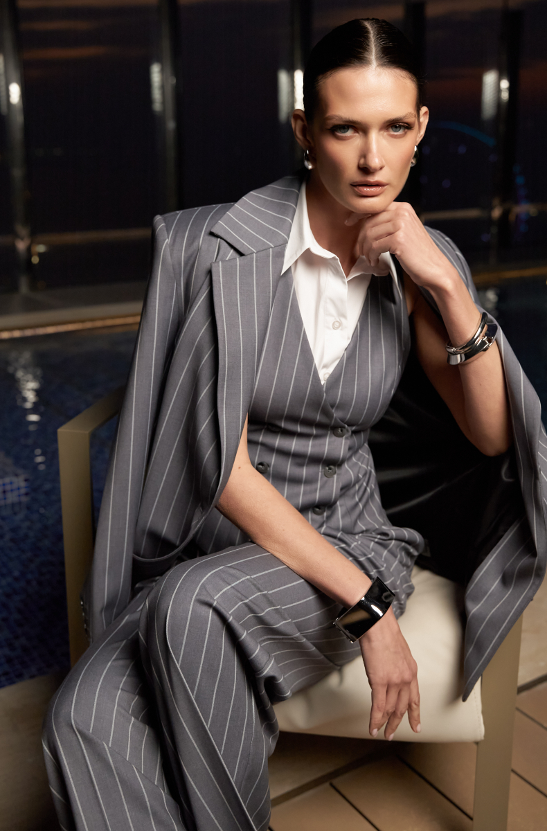 Современная классика в новом прочтении -  этот жакет-оверсайз  в изящном сером оттенке придаёт образу уверенность и непринуждённый шарм. Лёгкий силуэт, акцент на свободе движений и универсальная тонкая полоска делают его идеальной основой для стильных сочетаний - от офисного шика до вечернего лоска. Создай свой образ силы и элегантности вместе с этим безупречным жакетом от Истерики!