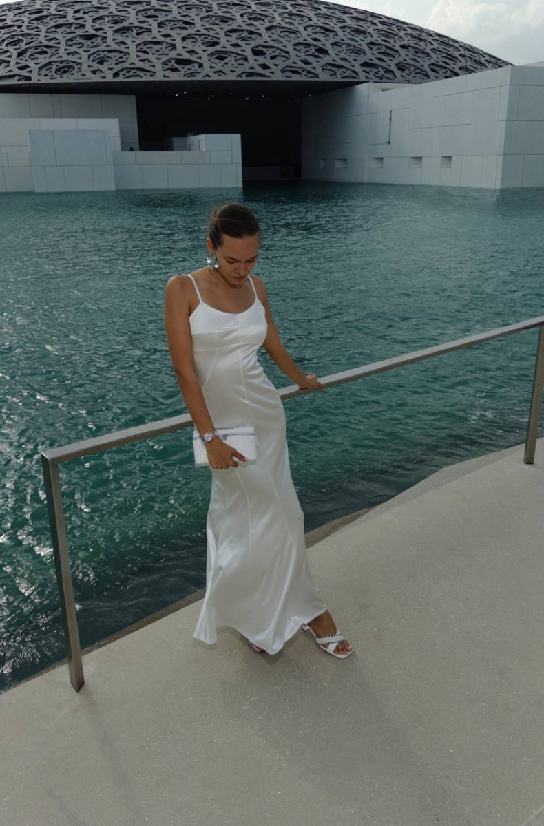 Это элегантное платье раскрывает женственность в самом нежном её проявлении. Белый цвет подчёркивает свежесть образа, а струящийся силуэт мягко следует за движениями, создавая ощущение лёгкости и притяжения. Минимализм формы, тонкие линии и деликатная посадка делают наряд чувственным и изящным. Почувствуй светлую провокацию, где нежность и соблазн идут рядом, вместе с этим платьем-комбинацией от Истерики!